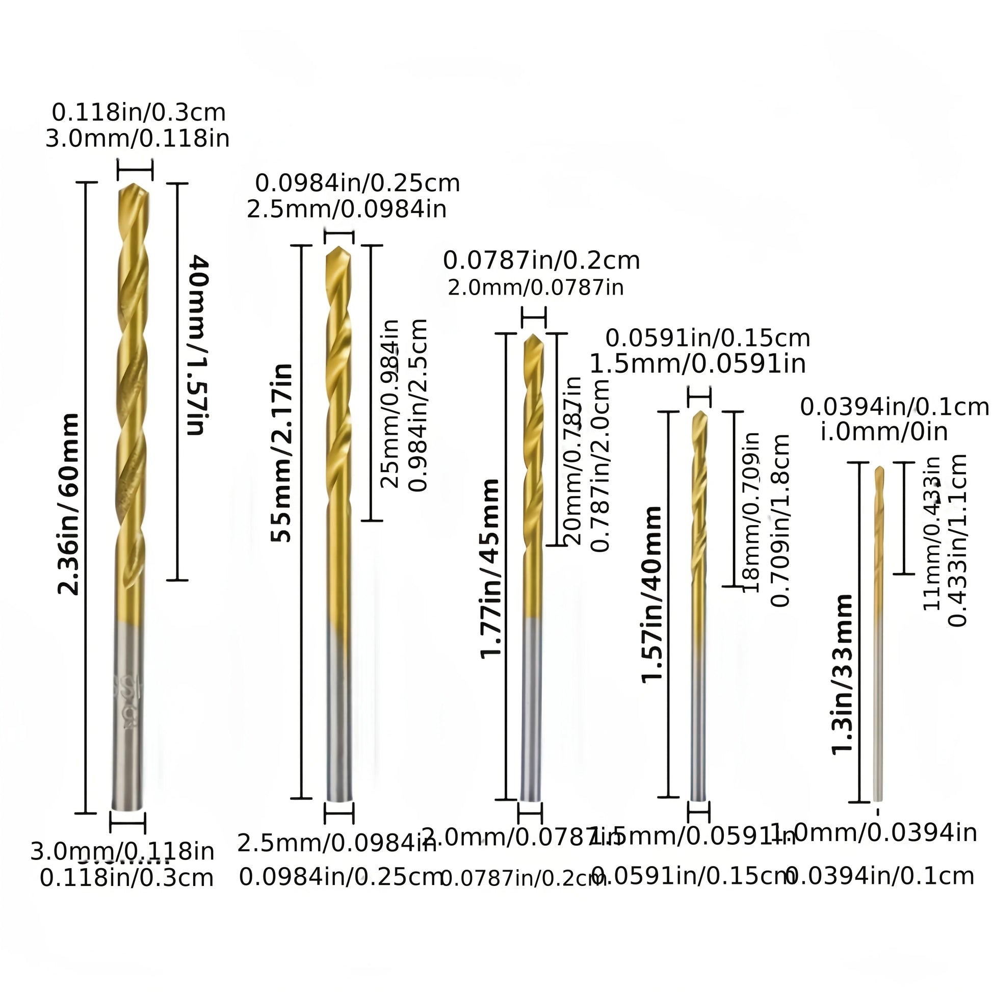 Drill Bit set - suitable for metal and wood 50 Pcs, 1-3mm high carbon steel, round shank spiral groove design, durable woodworking dr