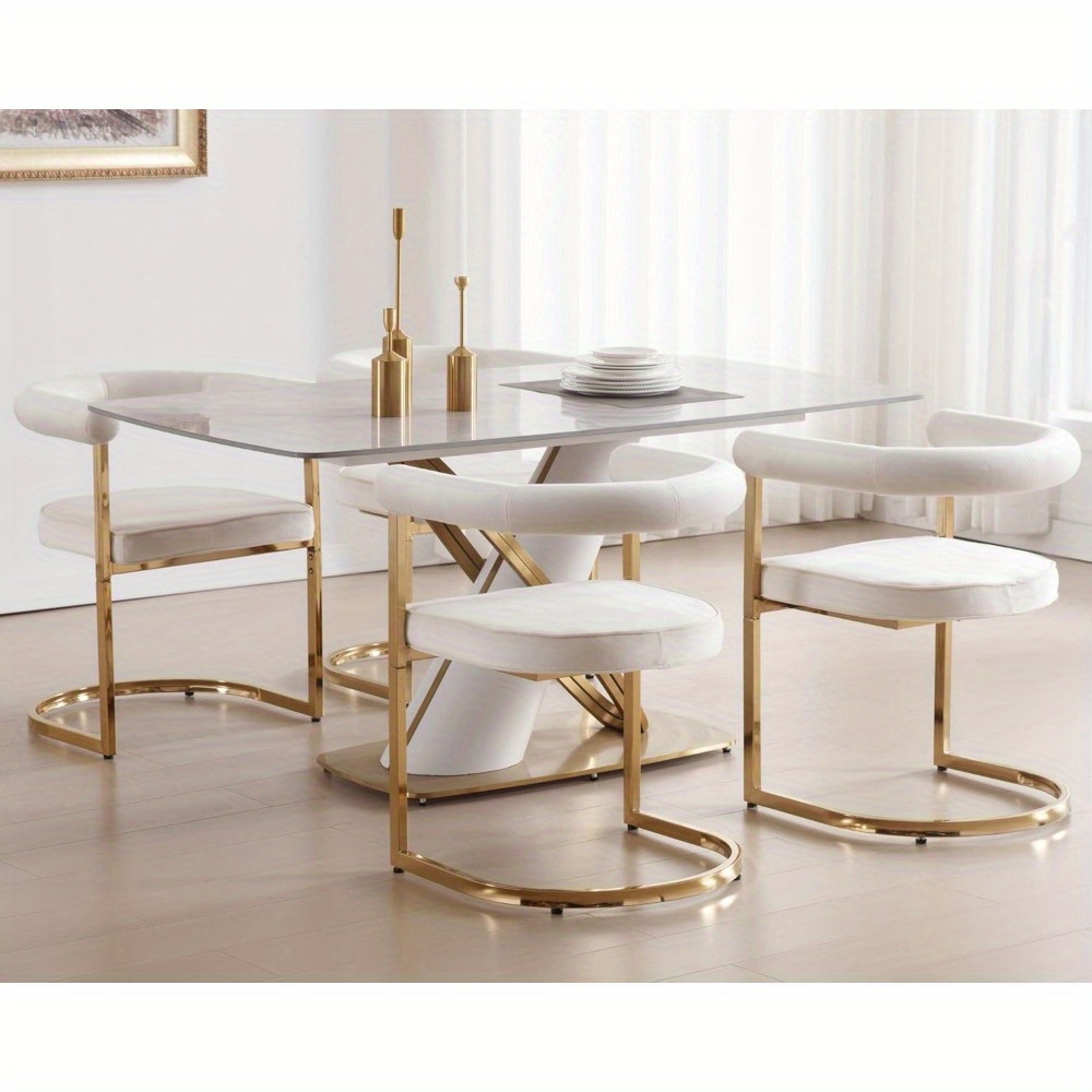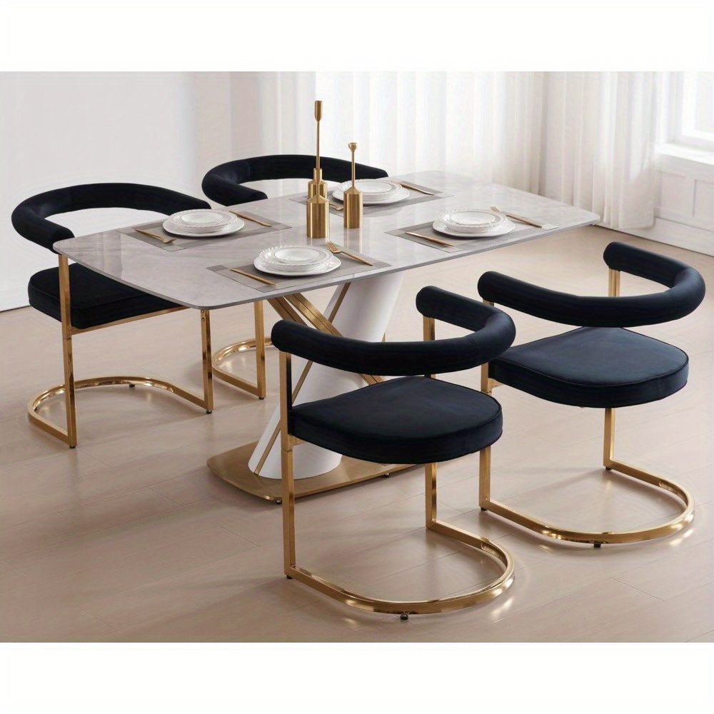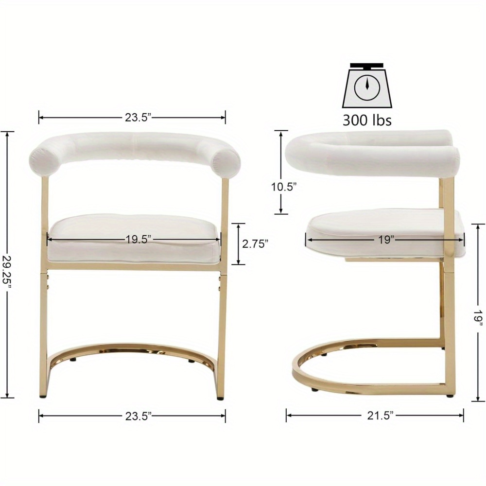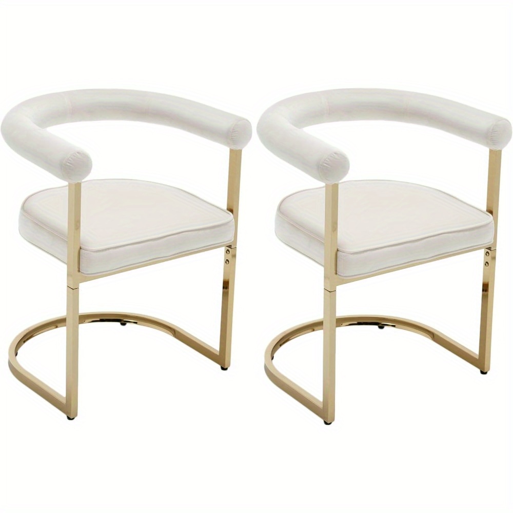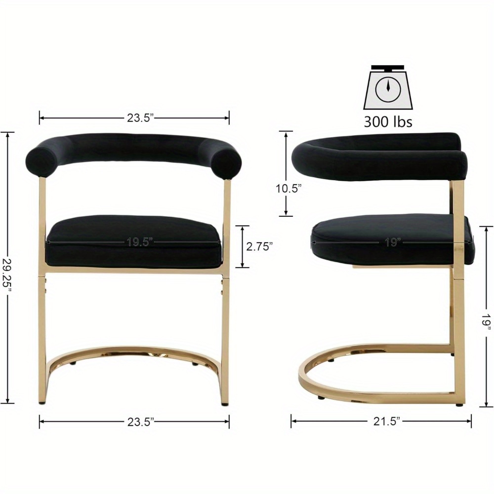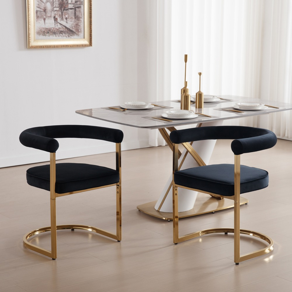 2Pcs Modern High-end Elegant Velvet Cushioned Dining Chairs with Bucket Shaped Open Backrests, and Kitchen Armchairs with Golden Metal Frames, Suitable for Dining Rooms and Kitchens