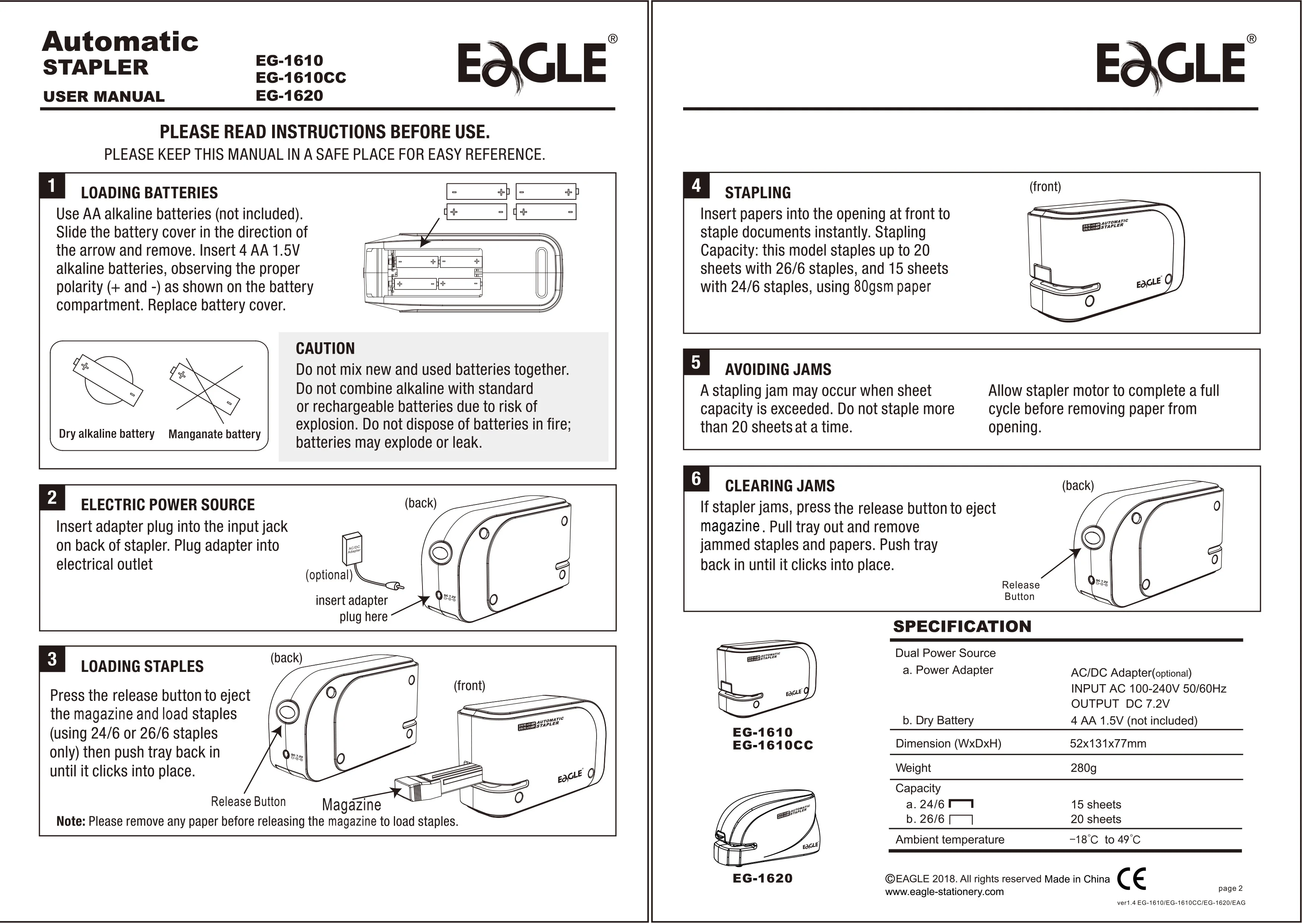EAGLE automatic electric Stapler, With free 2000 staples, 20-sheet capacity, Dual power supply, office,school binding supplies