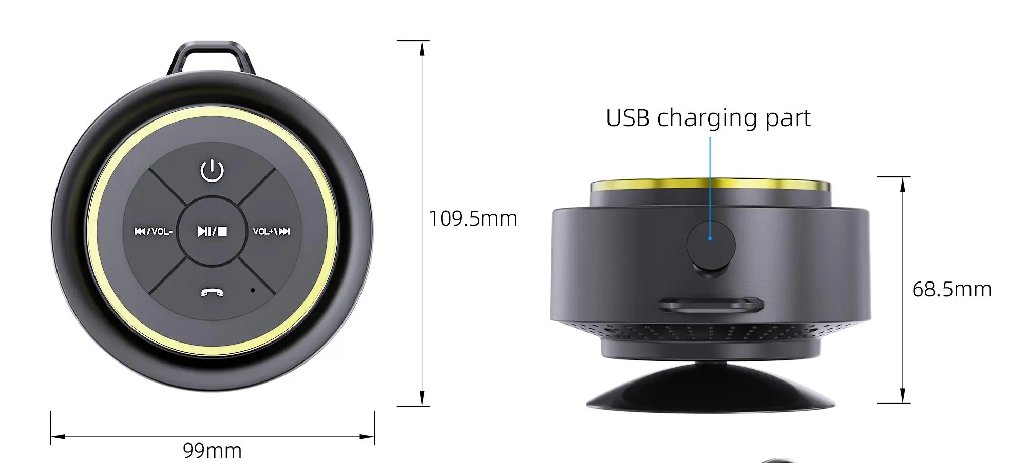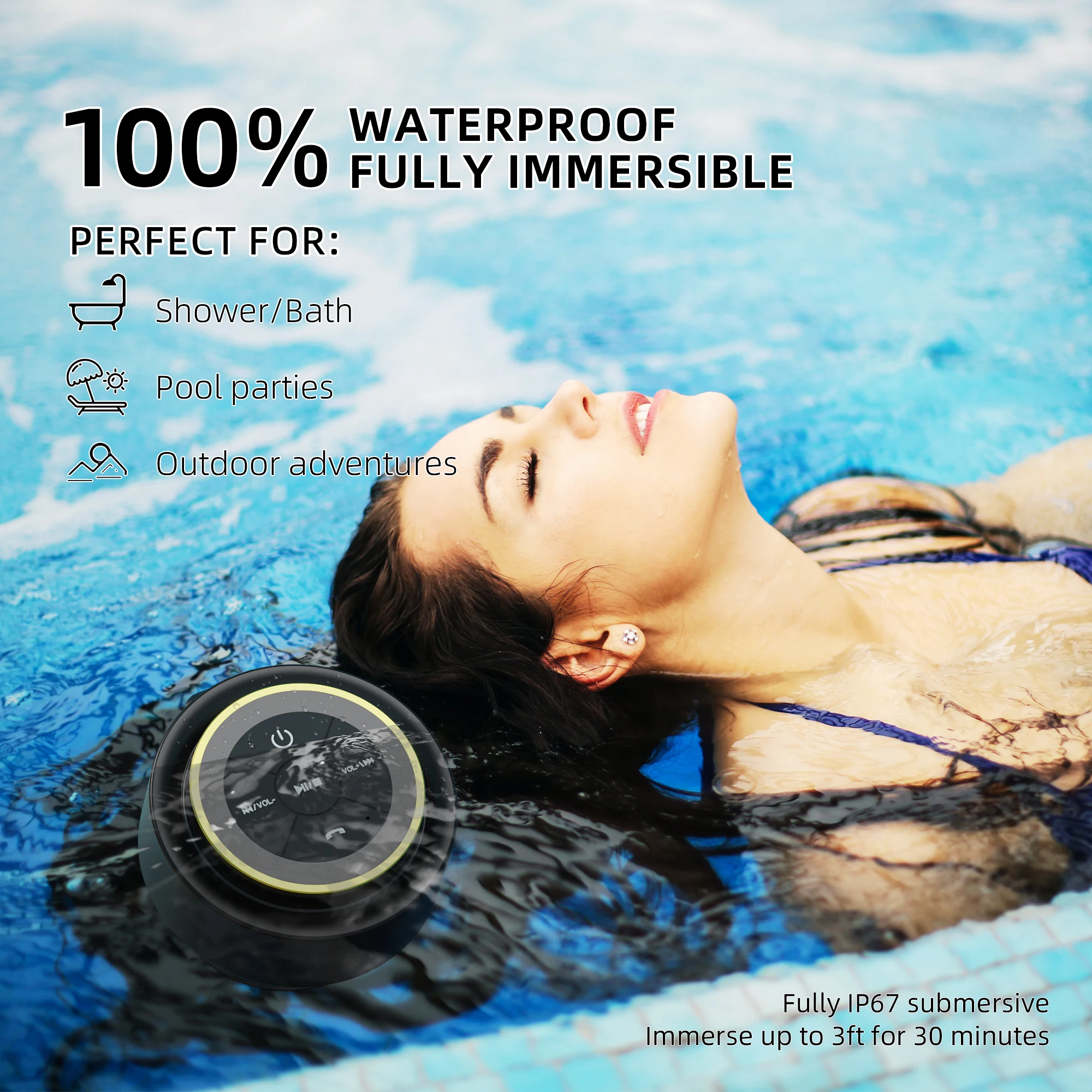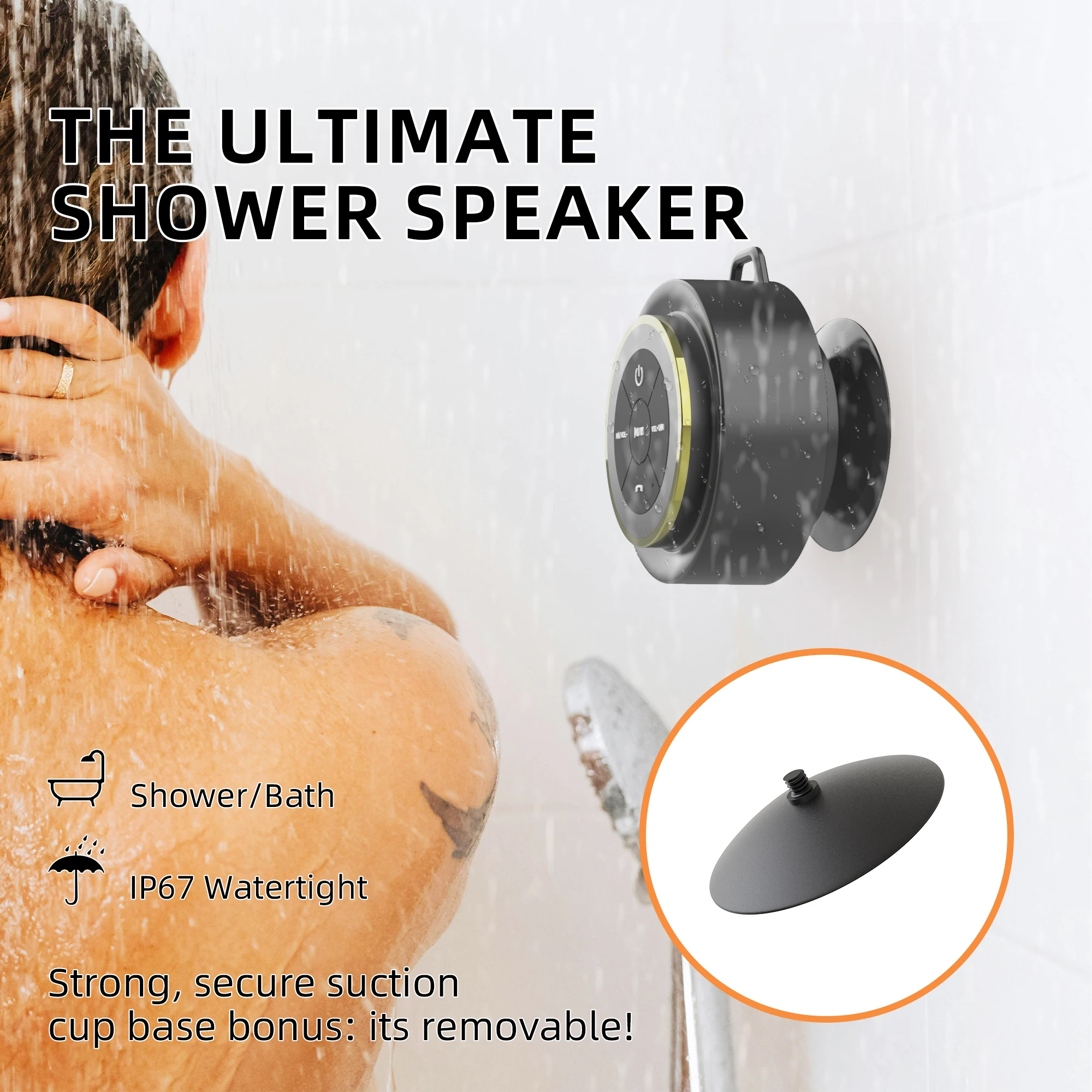 iFox Portable Bluetooth Shower Speaker, IPX7 Waterproof Outdoor Wireless Speaker, Built-in Mic, Carabiner, Beach, Camping, Hiking, Pool, Great Gift, Black/Gold